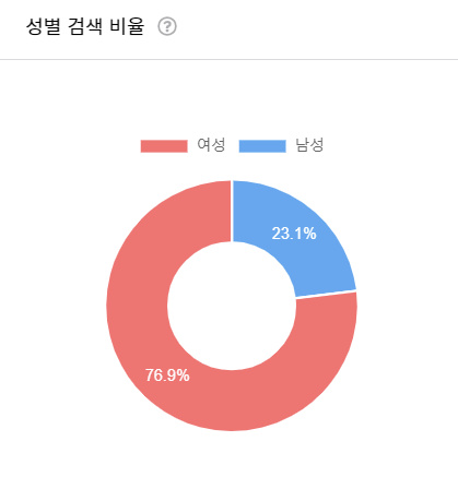 남성이 23.1%로 여성이 남성의 3배가 넘는 검색량을 보여주고 있습니다.