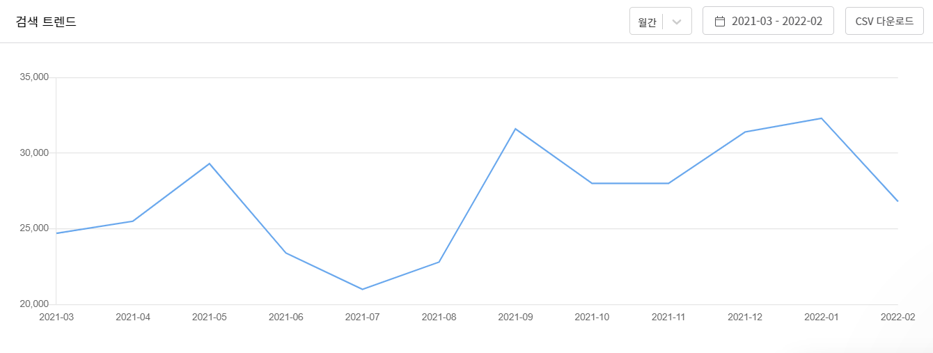 검색량은 월 2만5천에서 3만건 사이를 평균 왔다갔다 하고 있습니다.