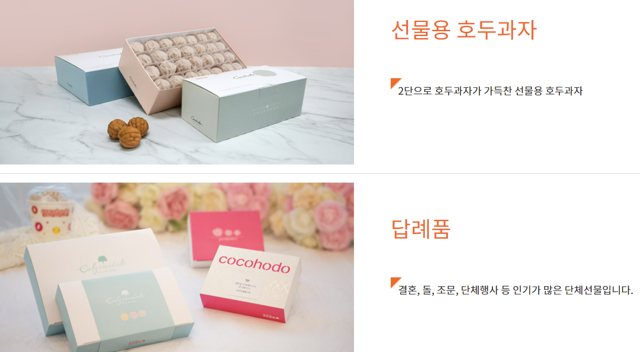 선물용 호두과자와 답례품등 제품이 있습니다.