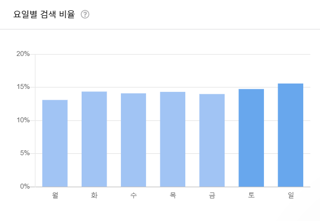 요일별 검색 비율은 특별한 것 없이 검색되고 있습니다.