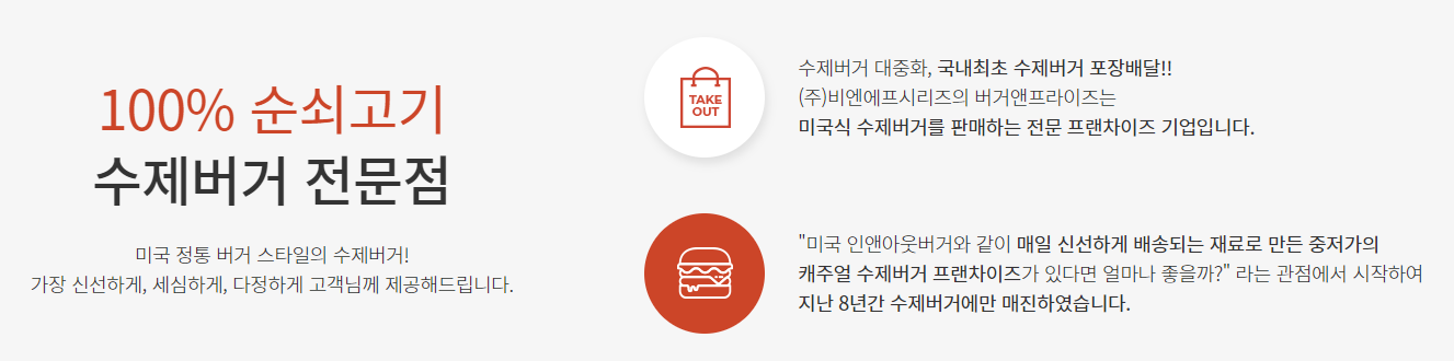 인앤아웃버거 같은 브랜드를 만들고 싶어서 중저가 캐주얼 수제버거 프랜차이즈를 만들겠다고 하고 만들었다고 합니다.
