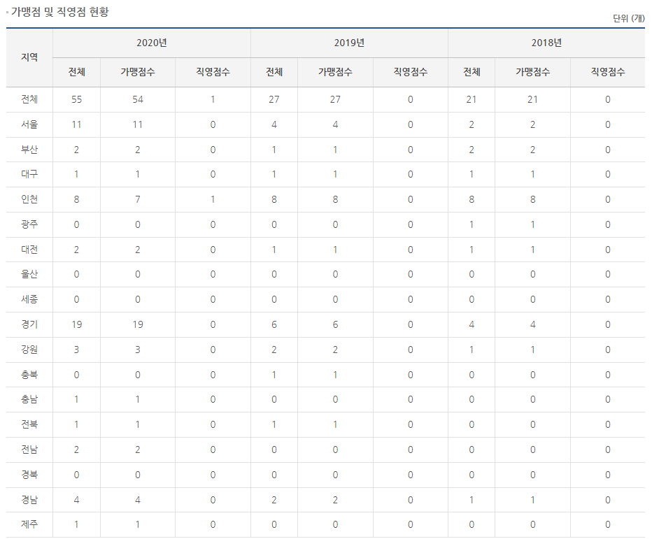 홈페이지를 통해 창업 관련된 내용을 알아봤으니 이제 가맹본부 현황과 매출등을 알아보도록 하겠습니다.