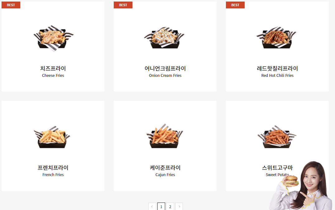 다양한 프렌치 프라이 메뉴가 있습니다.