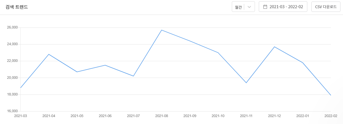 월 만8천건의 검색량을 보이고 있습니다.