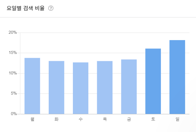 토요일과 일요일의 검색량이 많습니다.