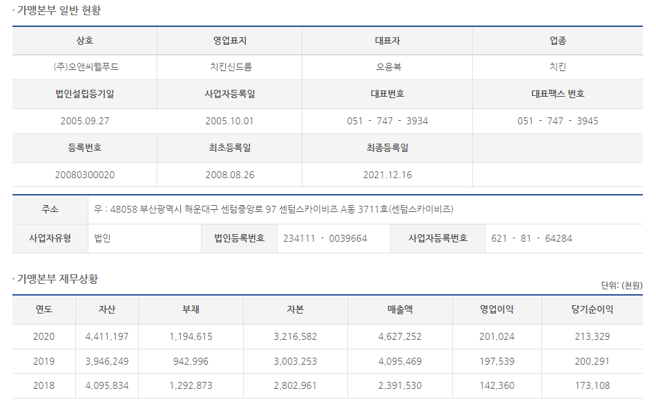 홈페이지와 공정위 정보공개서를 통해 알아보았으니