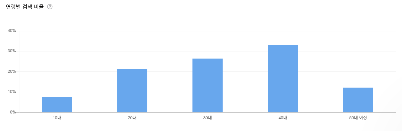 10대부터 40대까지 연령이 높아질수록 검색 비율이 높습니다.