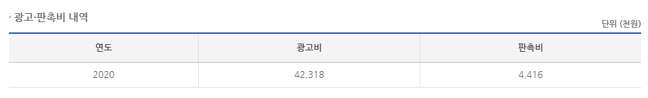 2020년 광고비는 4200만원을 지출했으며 판촉비 440만원을 지출했습니다.