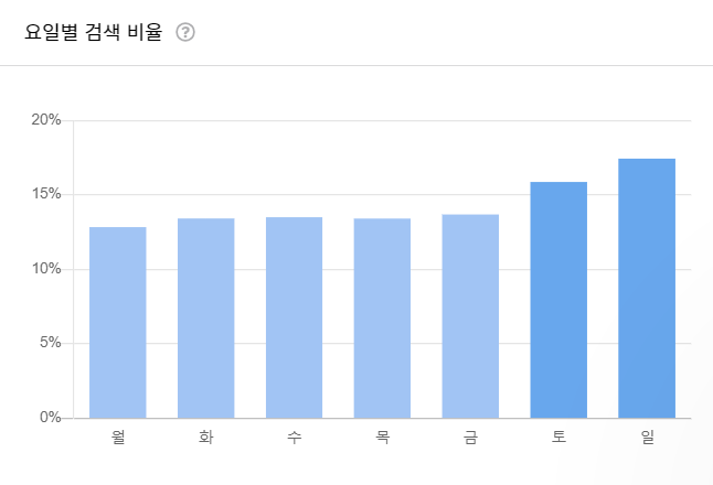주말인 토요일과 일요일에 검색 비율이 높습니다.
