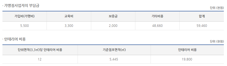 홈페이지를 통해 창업 비용등 매출등을 알아봤습니다.