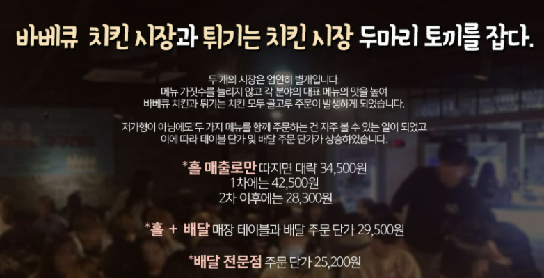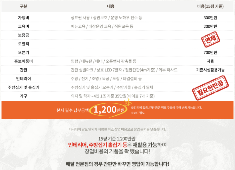그리고 기존에 치킨집등을 하시던 사장님들이 브랜드 변경을 할실때 유리할 것이라 생각됩니다.