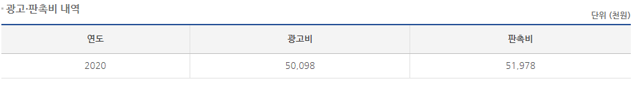 코로나 여파인지 2020년 매출액이 많이 줄었습니다.