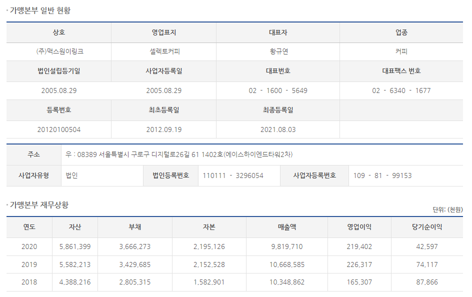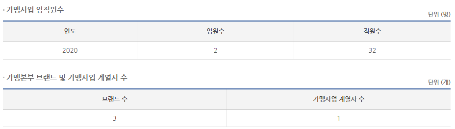 공정위 정보공개서를 통해 알아보겠습니다.