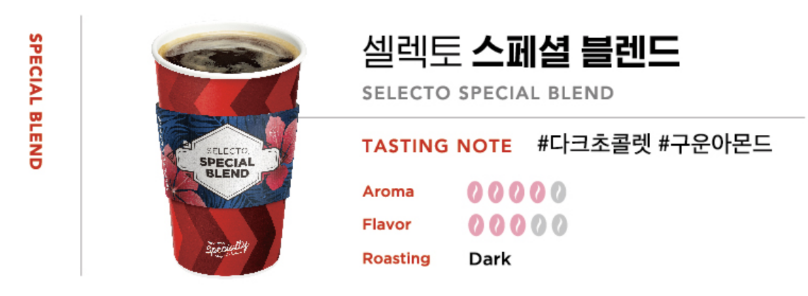 커피 생산량의 7%만 생산되는 최상급 아카비카 종의 생두를 사용해 최적의 로스팅을 통해 만들어 지는 스페셜티라고 합니다.