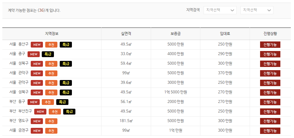 창업가능한 점포를 홈페이지에서 추천점포라고 나와있으며 추천하고 있습니다.