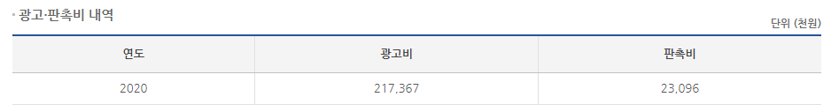 2020년 기준 광고비는 2억1736만원을 지출했습니다.