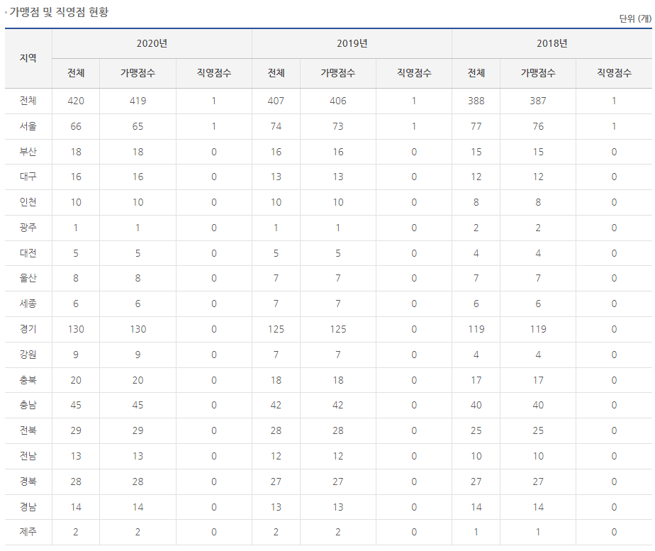 매출도 좋은 편이고 매장수도 적은 편이 아니라 창업하기 쉽지 않을것 같습니다.
