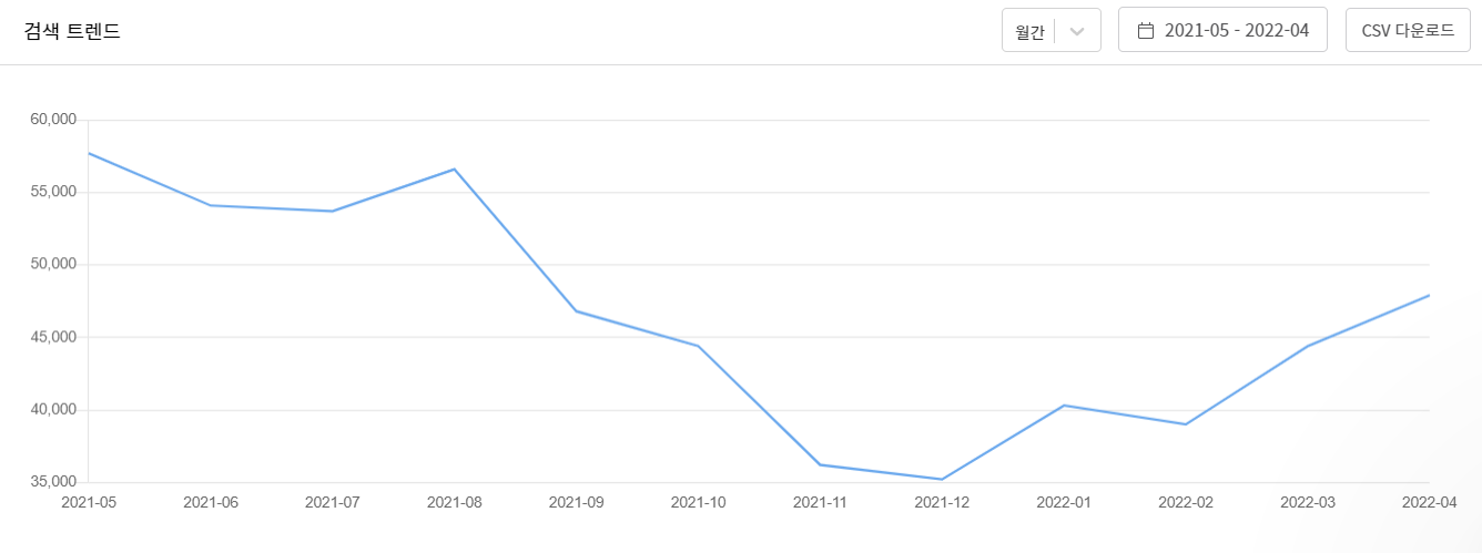 2022년 4월 월간 검색량은 47900건입니다.