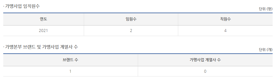홈페이지를 통해 찾아본 정보는 크게 많지 않으니 공정위 정보공개서를 통해 알아보겠습니다.