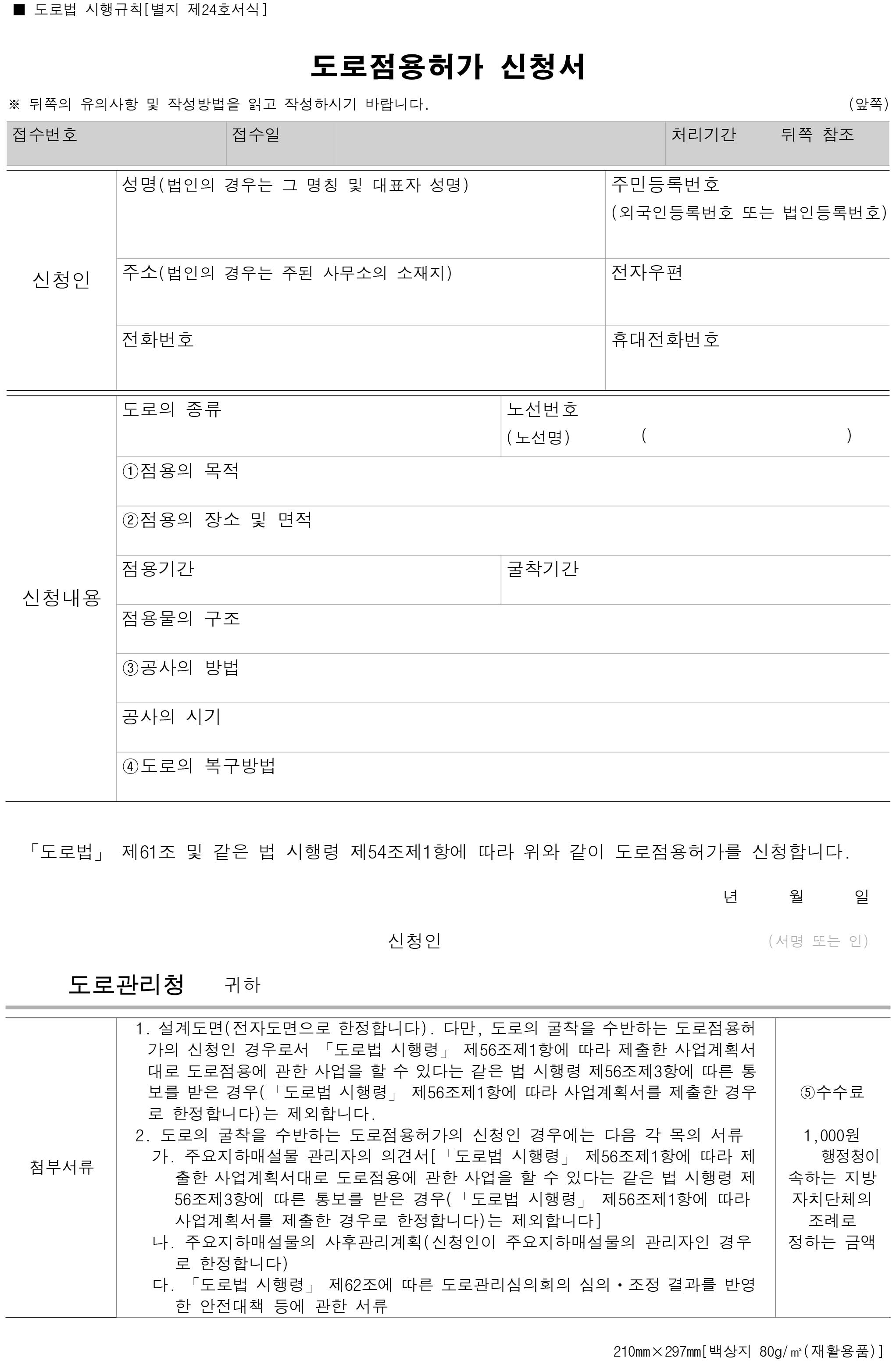 점용허가 신청서를 작성해서 제출하시라고 방수업자가 말을 했다고 합니다.