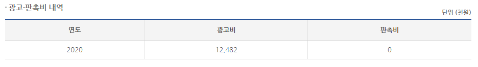 2020년 기준 광고비는 1248만원을 지출했으며, 판촉비는 지출한것이 없습니다.