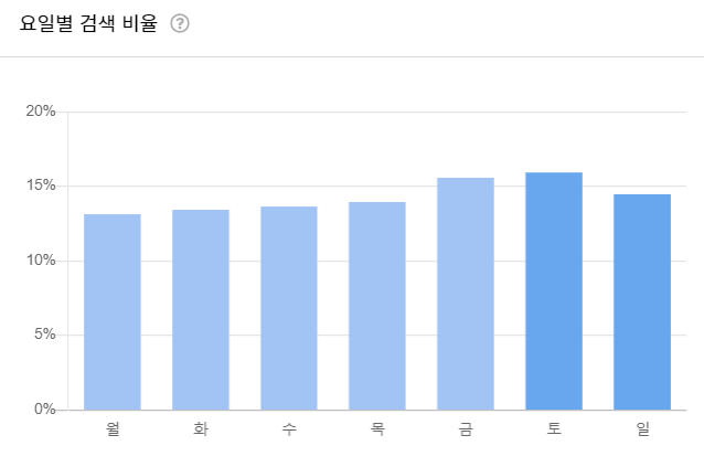 금요일과 토요일이 다른요일에 비해 검색비율이 높습니다.