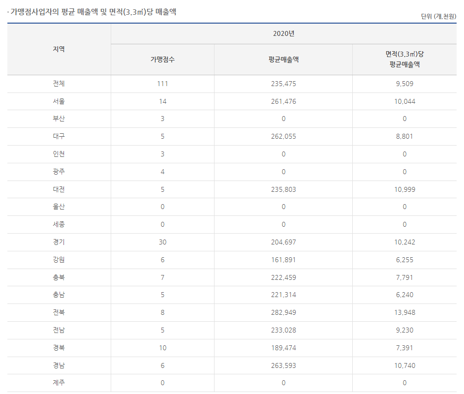 이제는 공정위 정보공개서를 통해 알아보겠습니다.