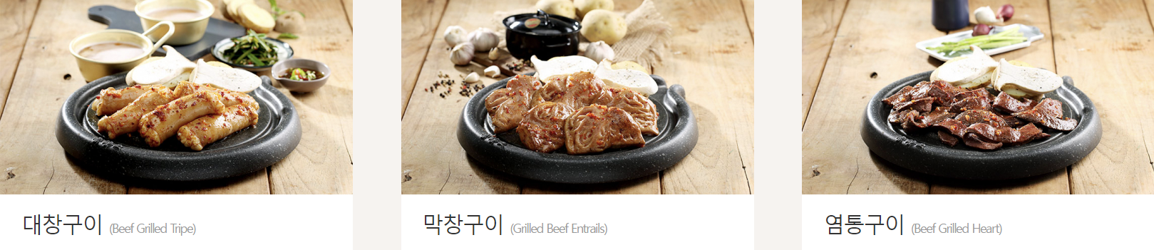 다른 메인 메뉴로는 대창구이, 막창구이, 염통구이가 있습니다.