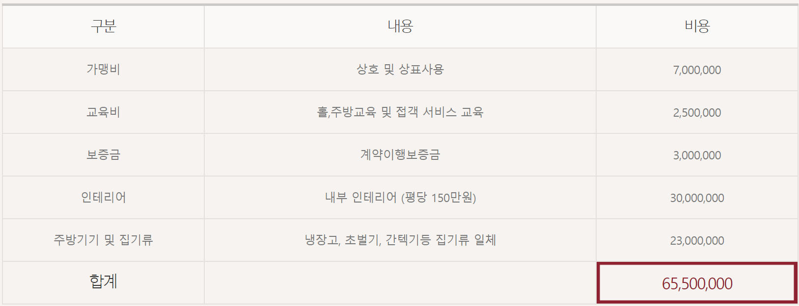 가맹비 770만원입니다. 교육비는 275만원입니다.