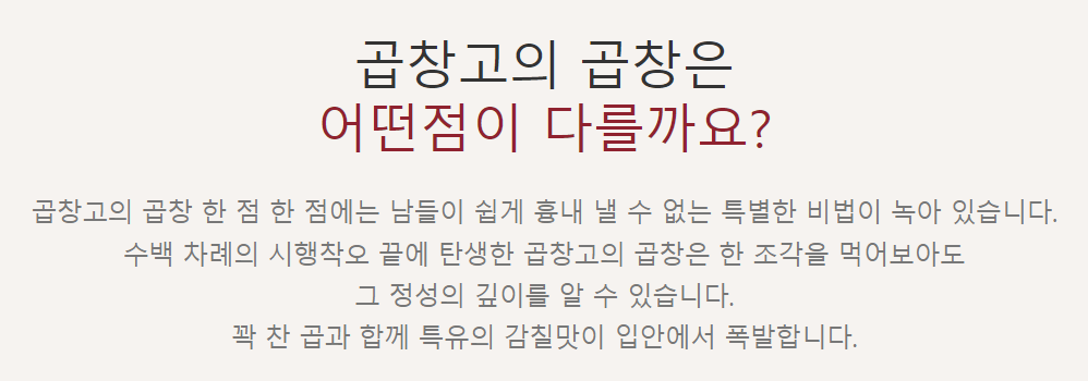 홈페이지를 통해 곱창고에 대해 알아봤습니다.