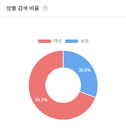 여성이 남성 두배 넘게 검색을 하고 있습니다.