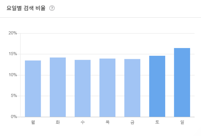 요일별 검색 비율입니다.