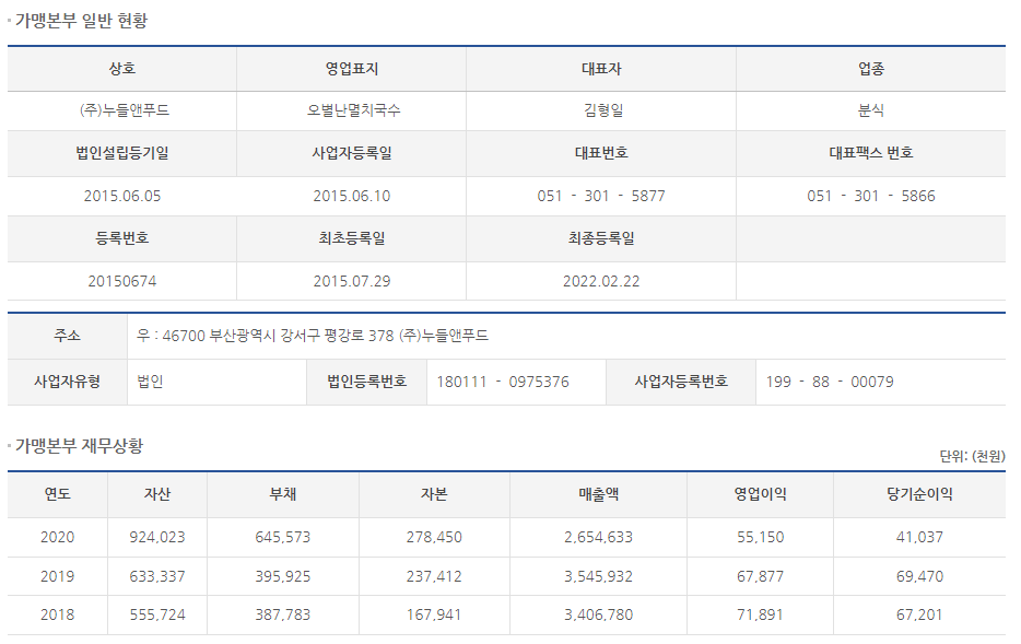 홈페이지와 공정위 정보공개서를 통해 오별난멸치국수에 대해 알아봤습니다.