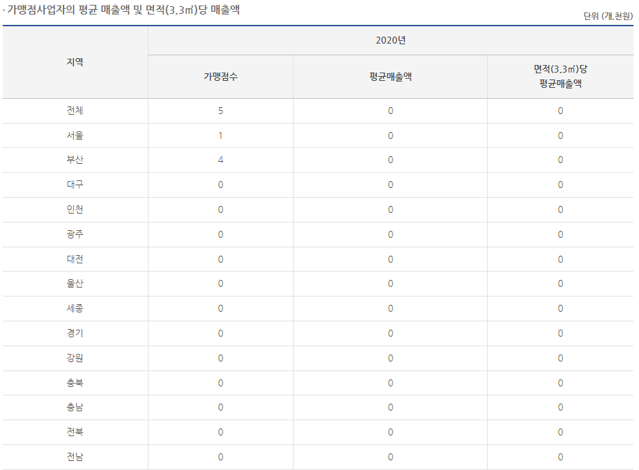 공정위 정보공개서에서도 매출정보가 없습니다.