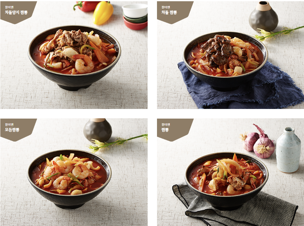 최상급 재료를 이용하며, 팔미엔이 개발한 특별한 소스를 이용한 깊은 맛의 국물이 팔미엔의 경쟁력이라고 합니다.