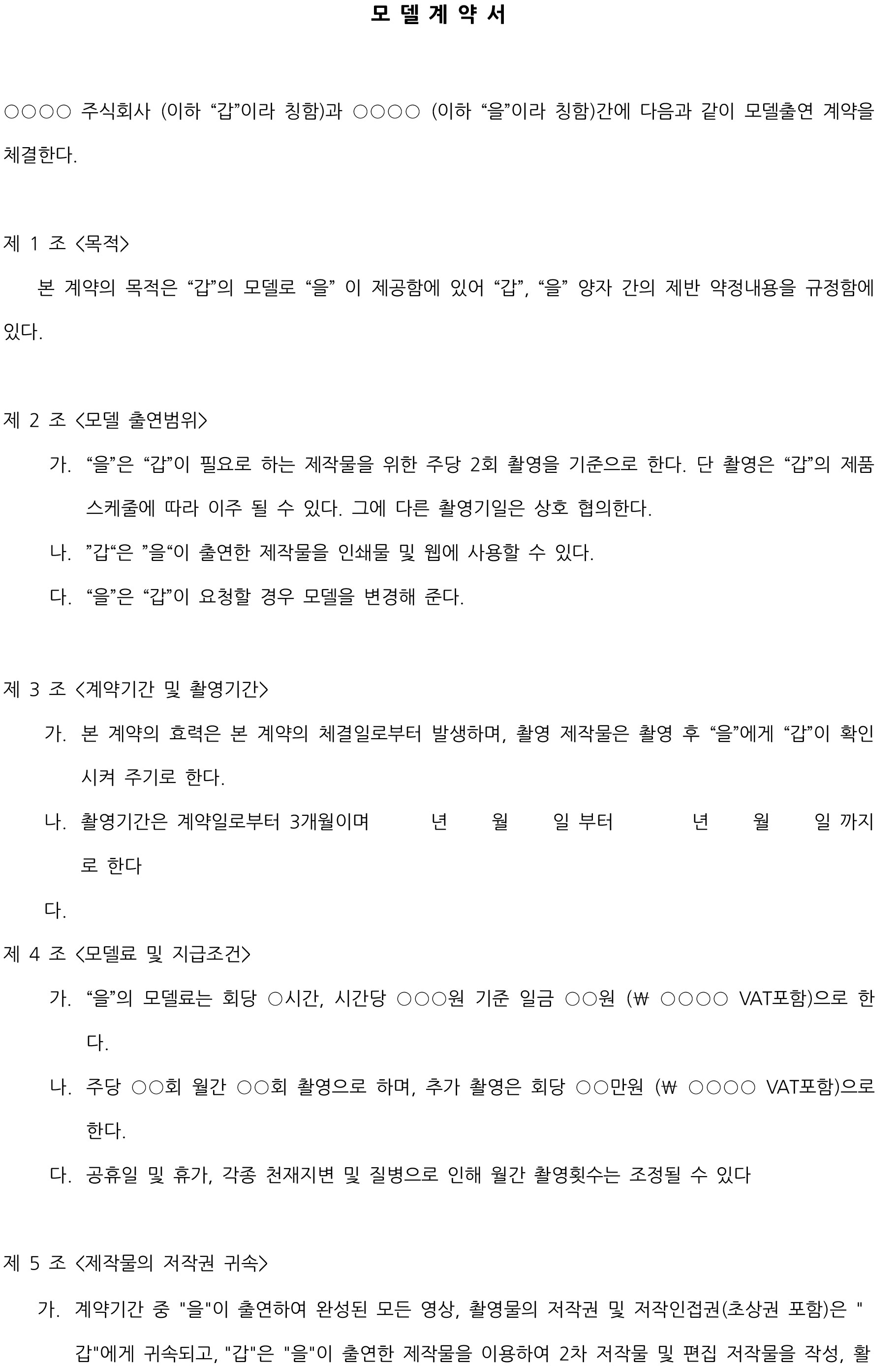 이 양식은 회사와 모델 개인의 계약 양식이 아니라