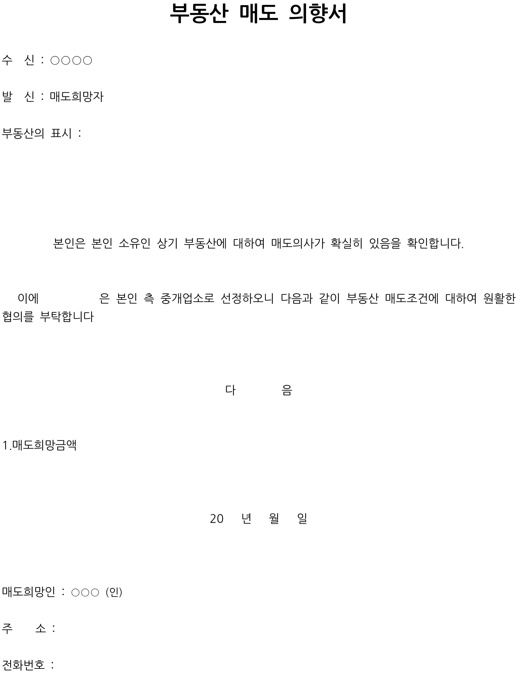 부동산에서 매도의향서를 요구하는 경우가 있습니다.