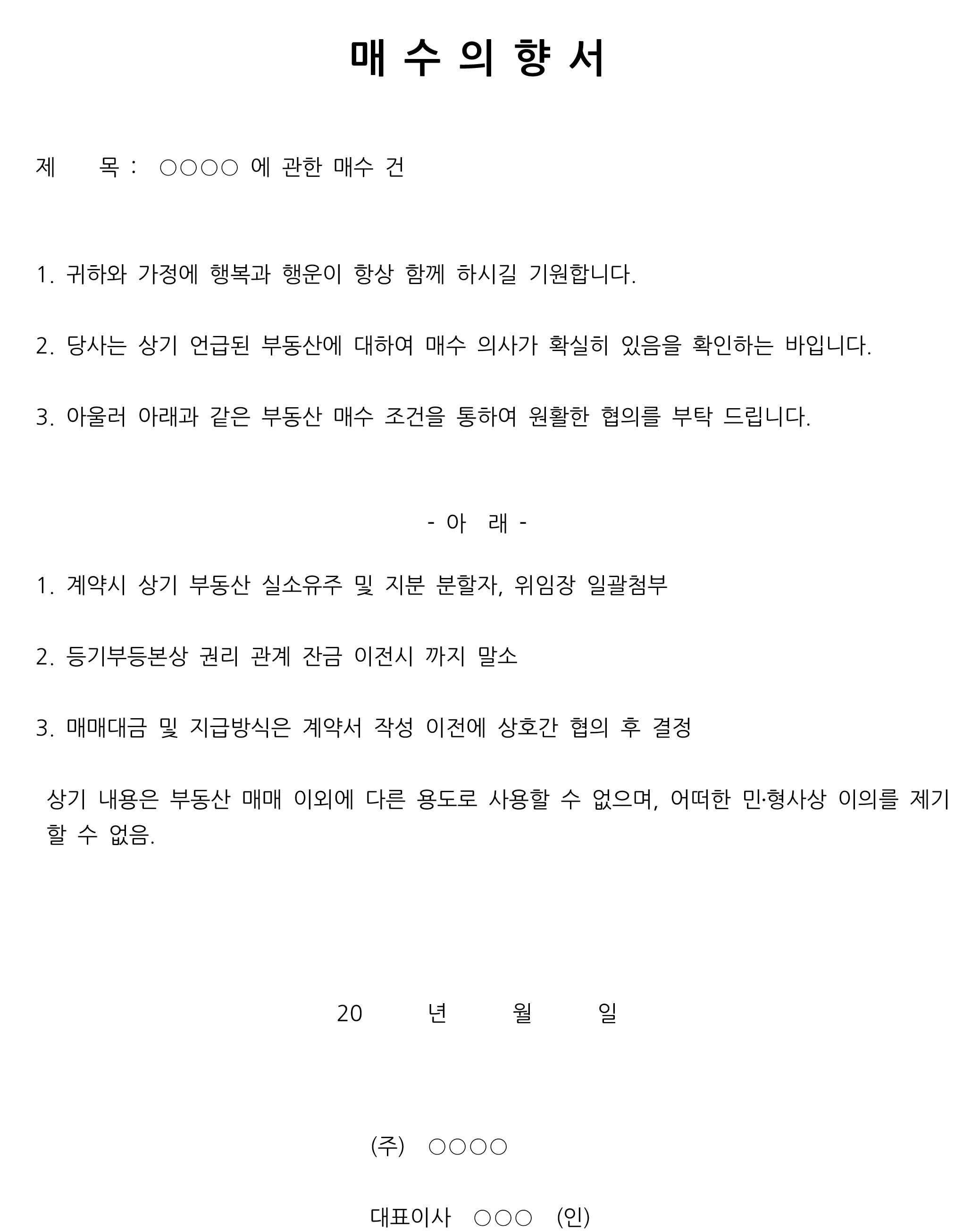 저는 매수의향서는 몇번 쓴적이 있습니다.