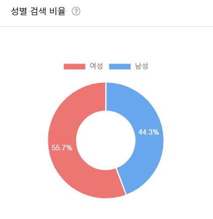 여성 비율이 55.7%, 남성비율이 44.3%입니다.