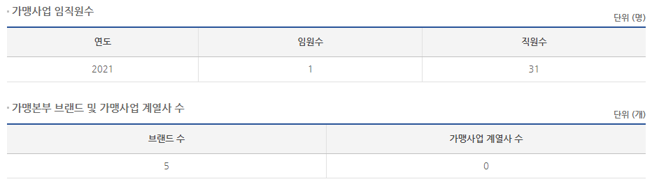 홈페이지와 공정위 정보공개서를 통해 알아봤습니다.