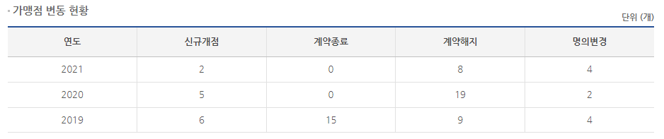 공정위 정보공개서를 통해 알아보겠습니다.
