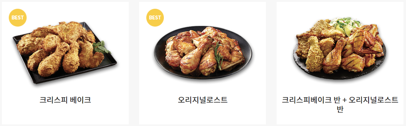 크리스피 베이크, 오리지널로스트 치킨을 판매하고 있습니다.