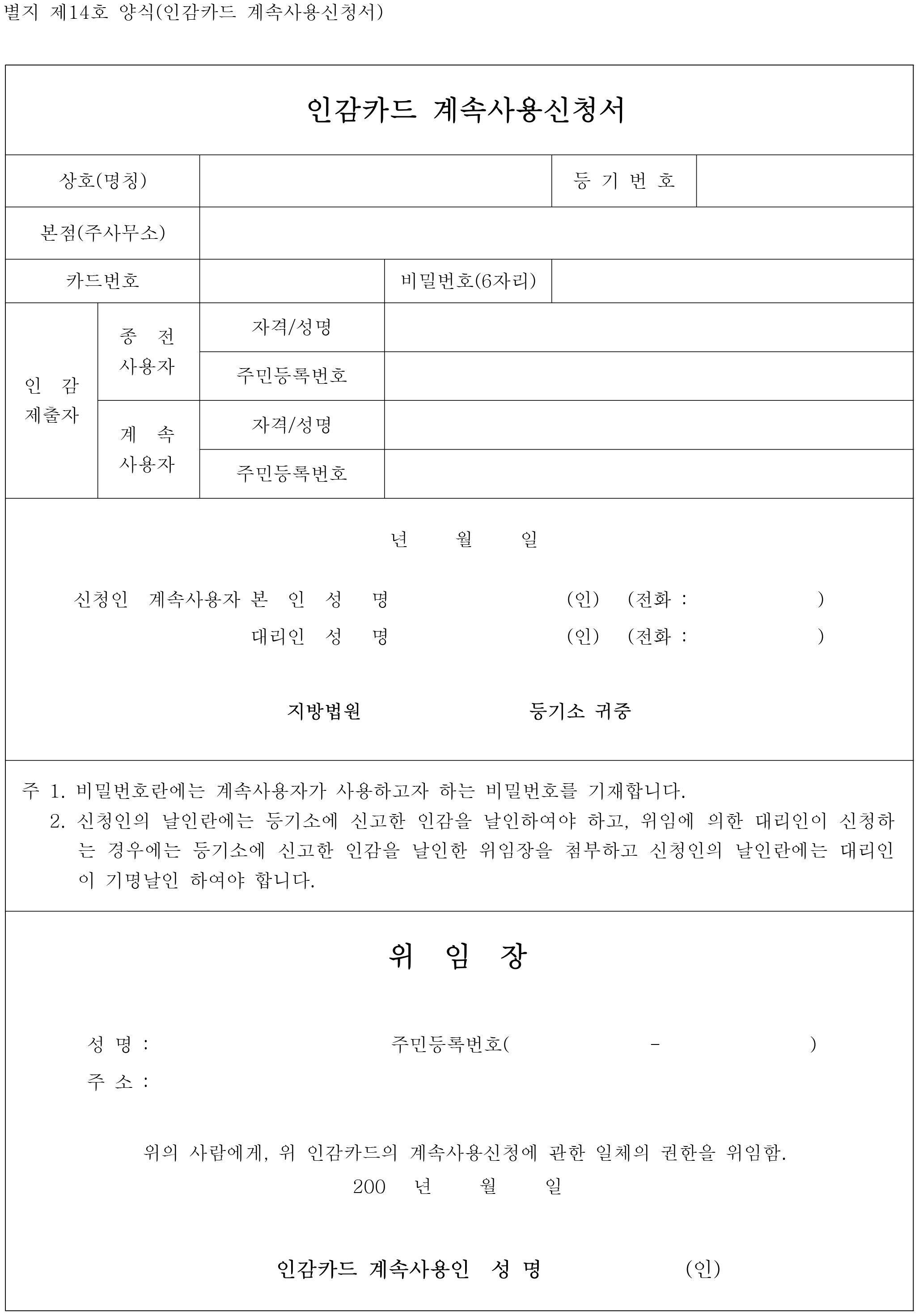해당 인감카드 계속사용신청서는 재출하시면 됩니다.