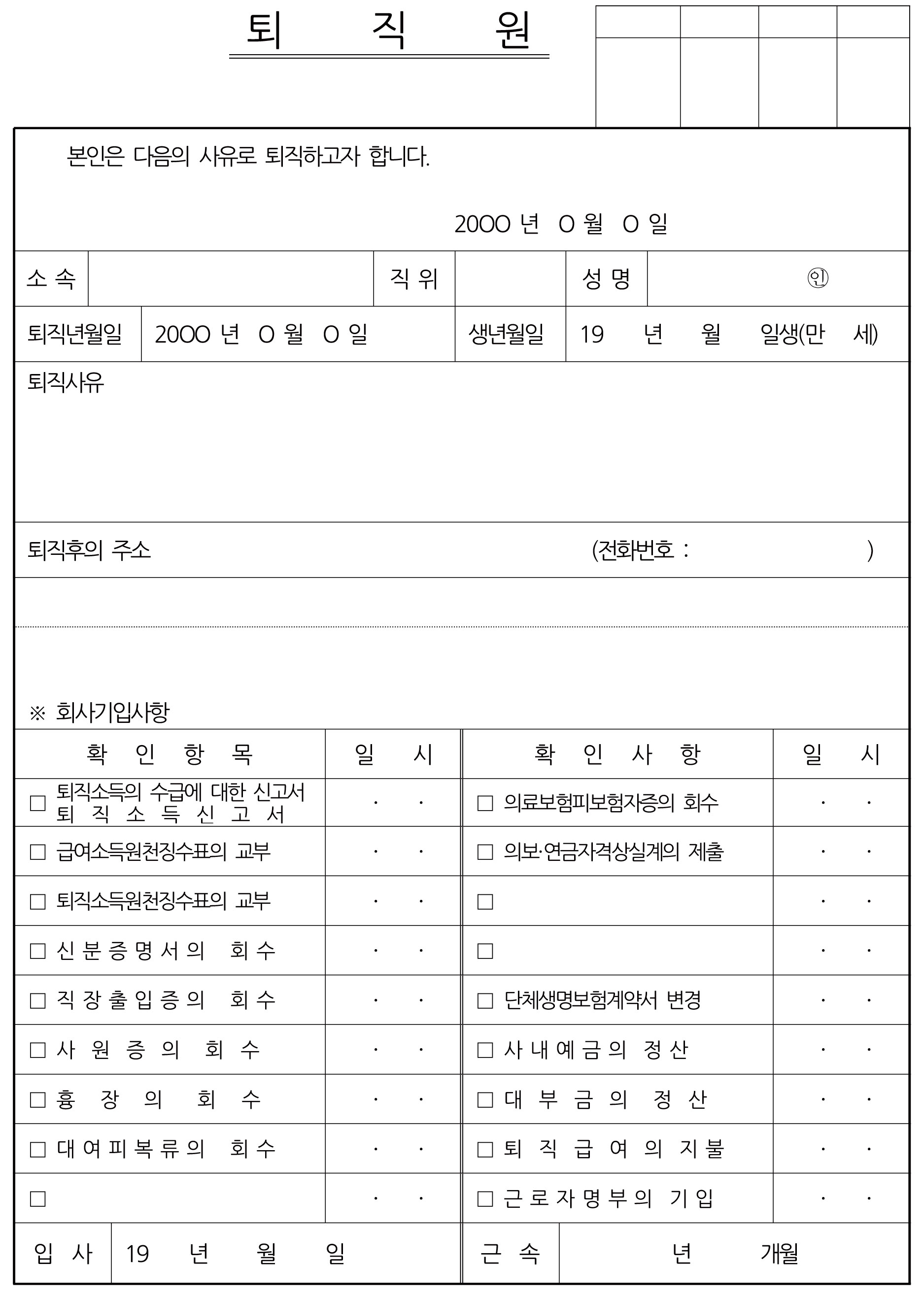 퇴직원, 사직서 양식입니다.