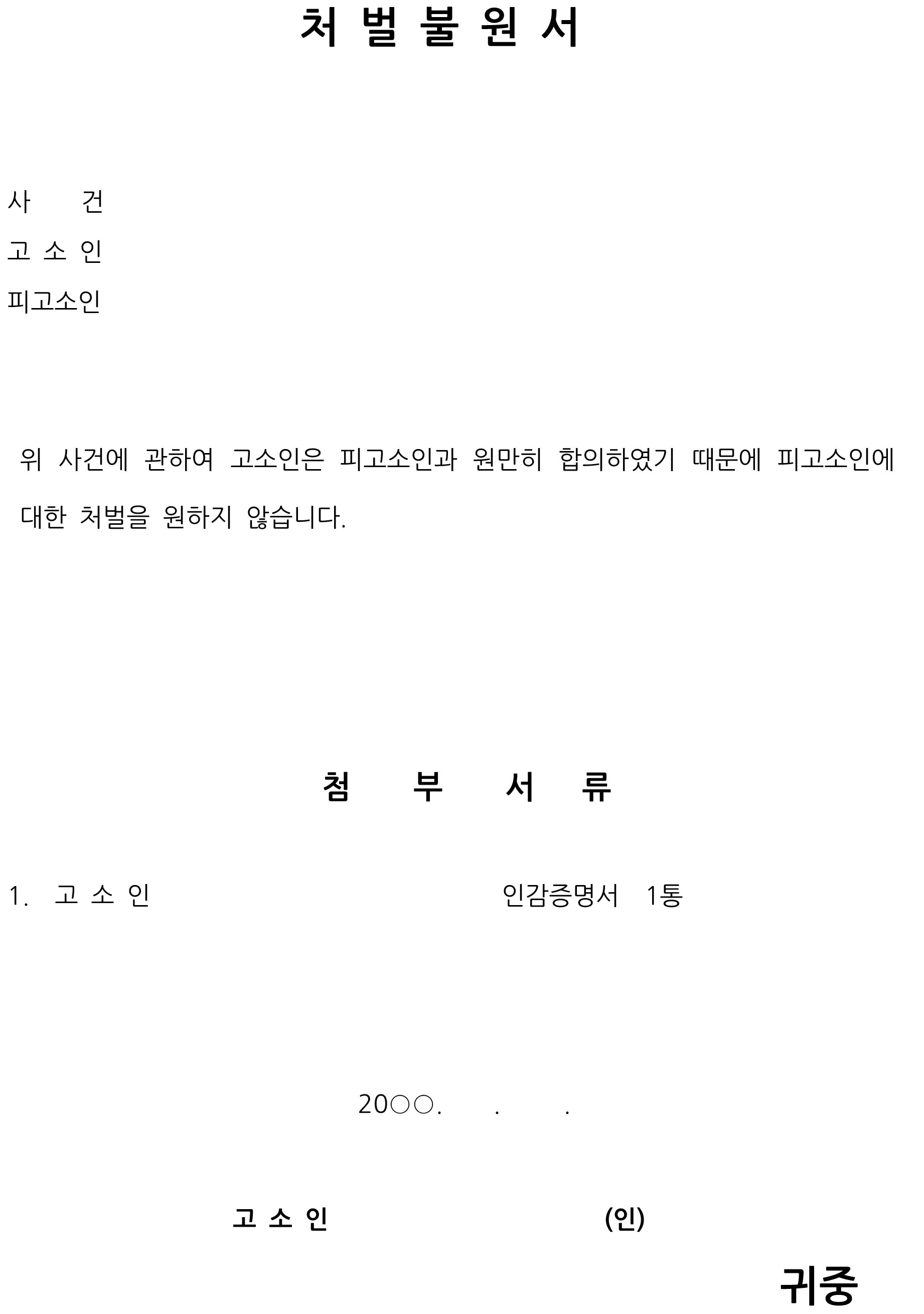 한해가 끝나가는데 뭐 좋게 좋게 끝내자 하는 심정에 처벌불원서를 작성해서 보내줬습니다.