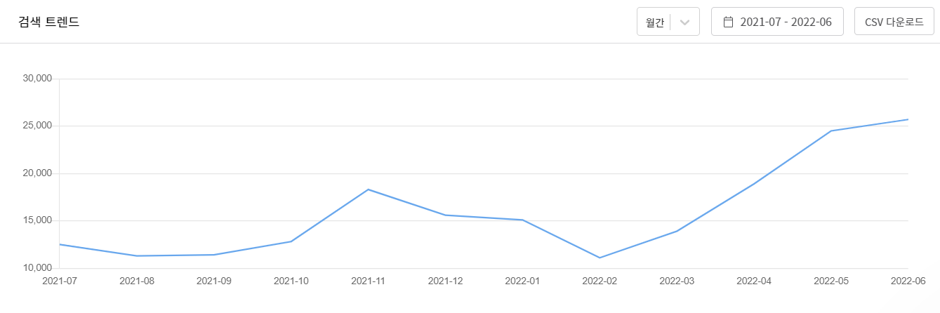 2022년 6월 기준 호맥의 검색량은 25700건입니다.