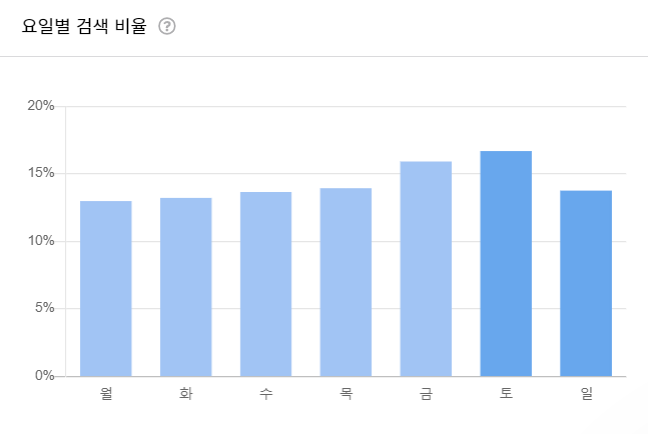 일주일중에 금요일과 토요일의 비율이 높은편입니다.