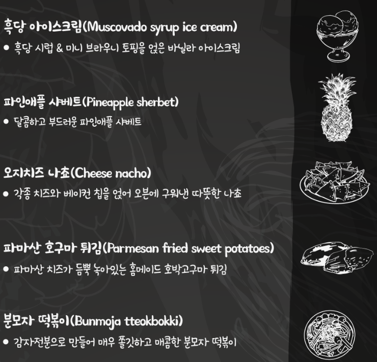 사이드메뉴도 다양한 메뉴가 있습니다.